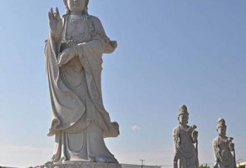 手工漢白玉大型觀音雕塑,深入人心,致使中國化的女觀音菩薩,完全取代了印度佛典中的正宗的男觀音菩薩。二臂、四臂、六臂、八臂、十臂、十二臂、十四、十六、十八、二十,至二十四,如是乃至一百八臂、千臂、萬臂、八萬四千母陀羅臂。二目、三目、四目、九目,如是乃至一百八目、千目、萬目、八萬四千清凈寶目。