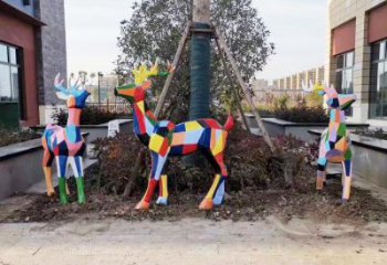 不銹鋼鏡面抽象梅花鹿園林景觀裝飾